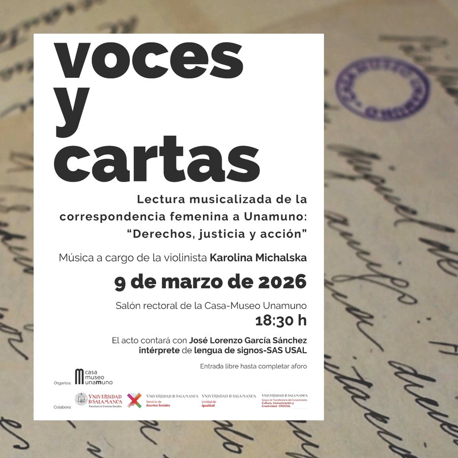 Todo nos parece un poco descafeinado y sin ilusión en los últimos tiempos. Como si nos hubiéramos cansado de las palabras. Eso apuntan los estudios, cada vez más economía de medios lingüísticos, que supone más economía de pensamiento. O sea simplismo, a veces ramplón. La obviedad o la locura, en ocasiones, elevadas a nivel de categoría. Reivindicamos la palabra, la de ellas, las que escribieron cartas para denunciar injusticias, para pedir lo que en derecho les correspondía. El destinatario fue D. Miguel de Unamuno. Este lunes, 9 de marzo, antes de la lectura del manifiesto y de la iluminación de la Fachada Rica de hermoso morado, nueva edición de “Voces y Cartas”, una investigación desde la USAL (Maribel Rodriguez Fidalgo, Adriana Paino Ambrosio y Ana Chaguaceda Toledano).