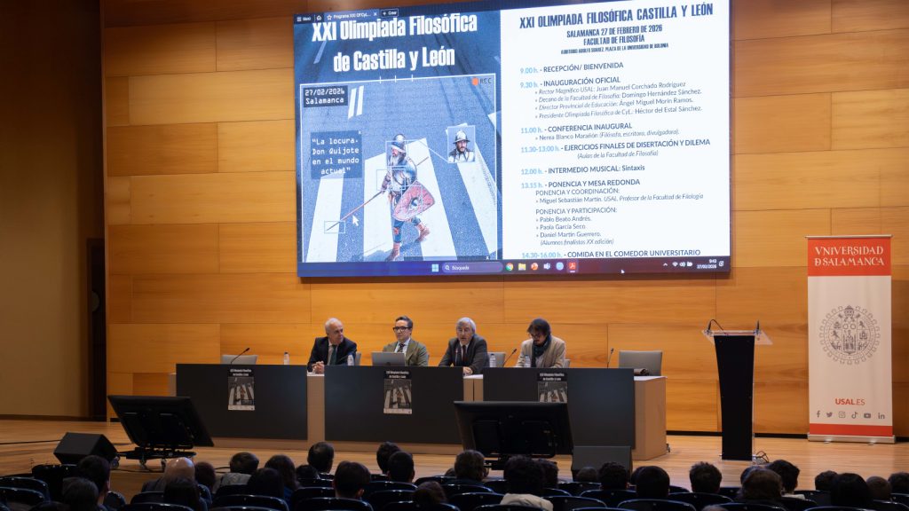 Esta edición, titulada “La locura: Don Quijote en el mundo actual”, reunió 114 trabajos de 43 centros educativos. El rector de la USAL, Juan Manuel Corchado, inauguró el encuentro junto con el decano de la Facultad de Filosofía, Domingo Hernández; el director provincial de Educación, Ángel Miguel Morín; y el profesor de la USAL y presidente de la Olimpiada Filosófica de Castilla y León, Héctor del Estal.
