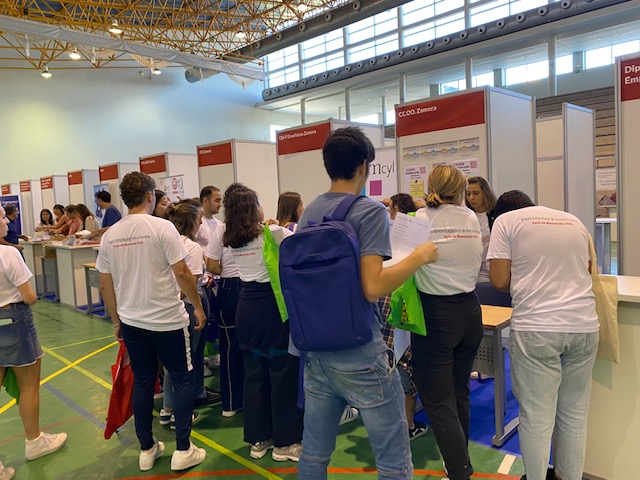 La Universidad de Salamanca sigue con sus Ferias de Bienvenida. Hoy le ha tocado el turno a Zamora, Campus Viriato, y su Pabellón de Deportes no ha podido estar más concurrido. Miles de personas se han dado cita allí esta mañana y han dado la bienvenida a este curso como se merece, con la mayor ilusión y optimismo.