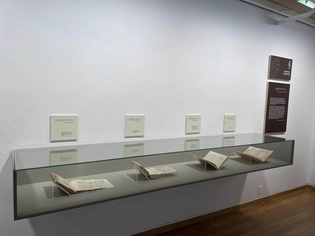 Las secciones en que se divide la exposición son Sobre la antigüedad clásica, Vitrubio, vitrubianos y antivitrubianos, Antropometría, El arte de la montea, Tratados de Arquitectura militar y fortificación y Final del viaje: Universitas. Studi Salamantini