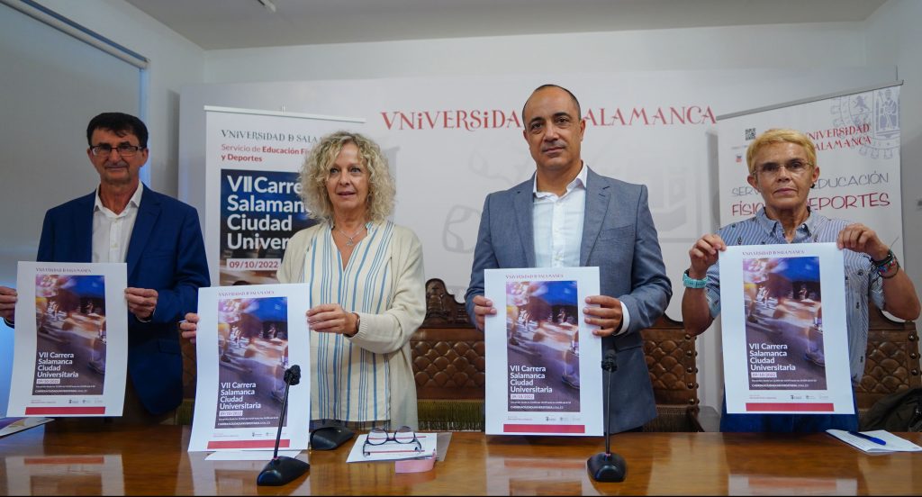 Ya tenemos fecha para la Carrera Salamanca Ciudad Universitaria. Será el 9 de octubre cuando se celebre la que va a ser la séptima edición de este evento deportivo popular, que ya ha traído a Salamanca a atletas de gran nivel. Una apuesta por la vida sana, la participación y el atletismo, que era presentada por la vicerrectora de Estudiantes, el director y dos técnicos del Servicio de Educación Física y Deportes, grandes atletas también ellos, Rosa Colorado y Honorato Hernández.