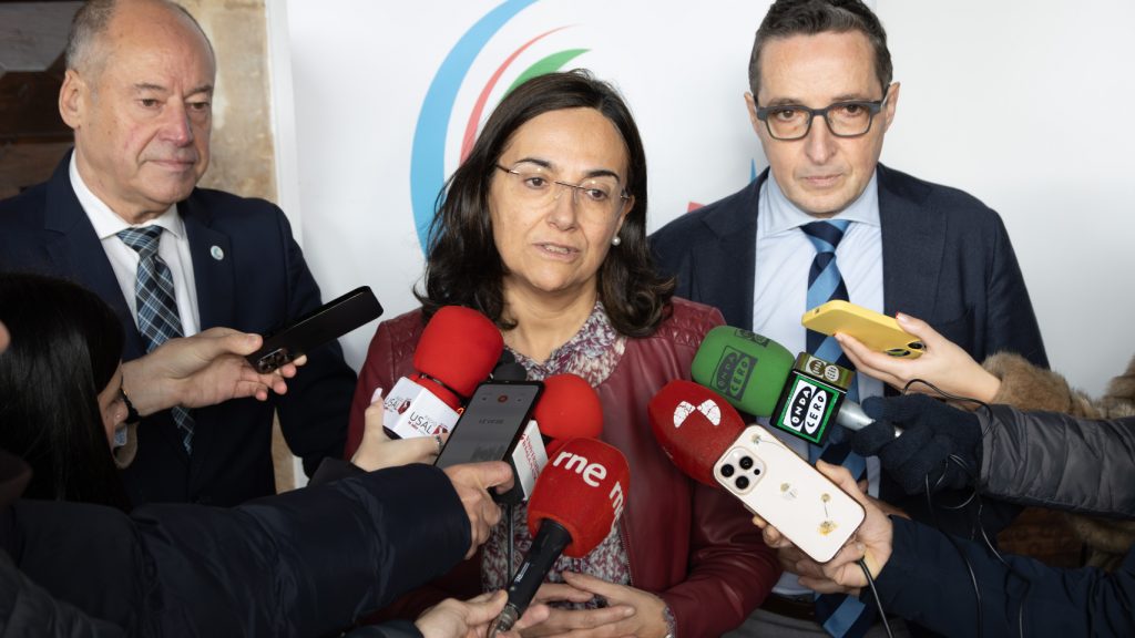 Antes de la reunión ha habido una presentación a los medios por parte del rector de la USAL, Juan Manuel Corchado. la presidenta de CRUSOE y rectora de UNICAN, Concepción López y el presidente ejecutivo de la Secretaría General Técnica de CRUSOE, Salustiano Mato.