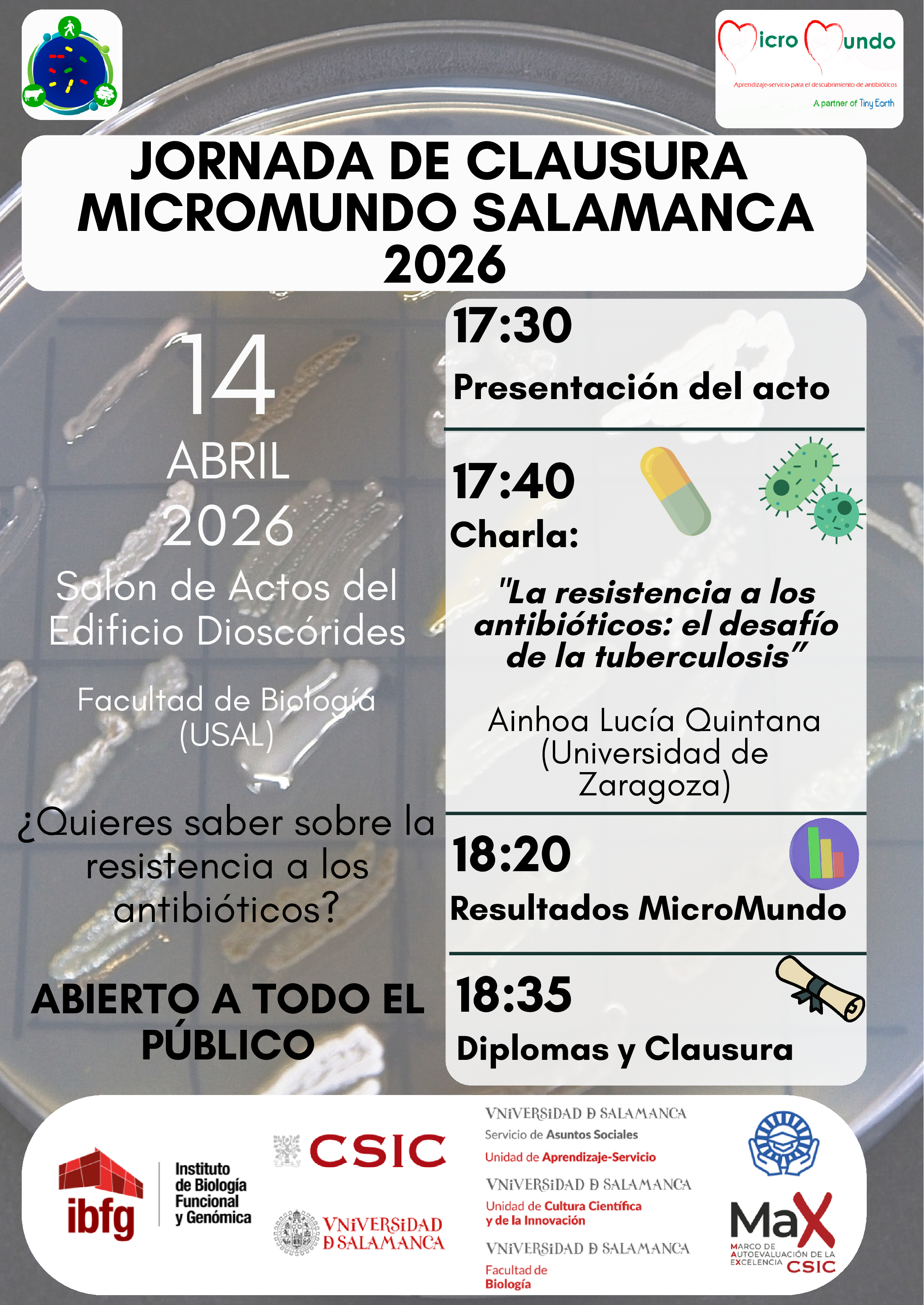 El proyecto MicroMundo, referente en ciencia ciudadana y aprendizaje-servicio, culmina su edición 2026 con una jornada de clausura en Salamanca que combina divulgación, resultados científicos y participación estudiantil. El encuentro, abierto al público, pondrá en valor el trabajo de los jóvenes en la búsqueda de nuevos antibióticos y abordará el reto de la resistencia antimicrobiana a través de una charla especializada, además de la presentación de resultados y la entrega de diplomas.