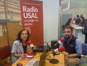 En el stand de la radio comenzamos con una entrevista a Andrés Rodríguez, del Servicio de Asuntos Sociales de la USAL.