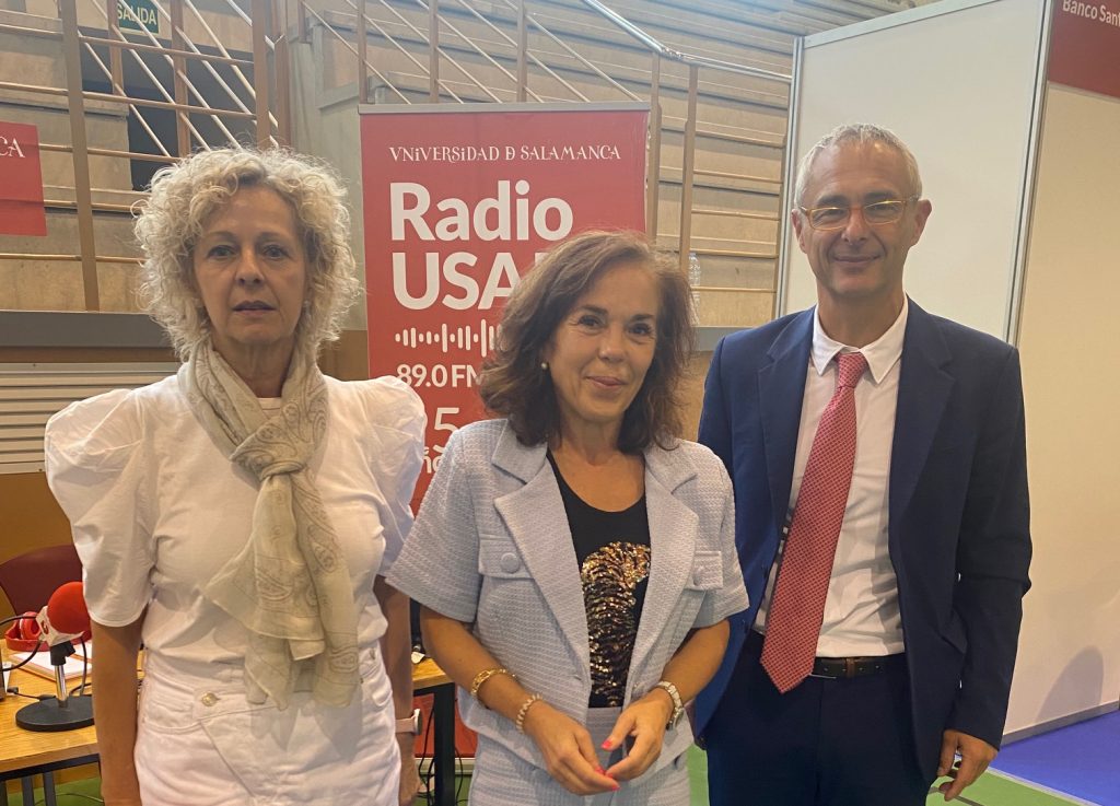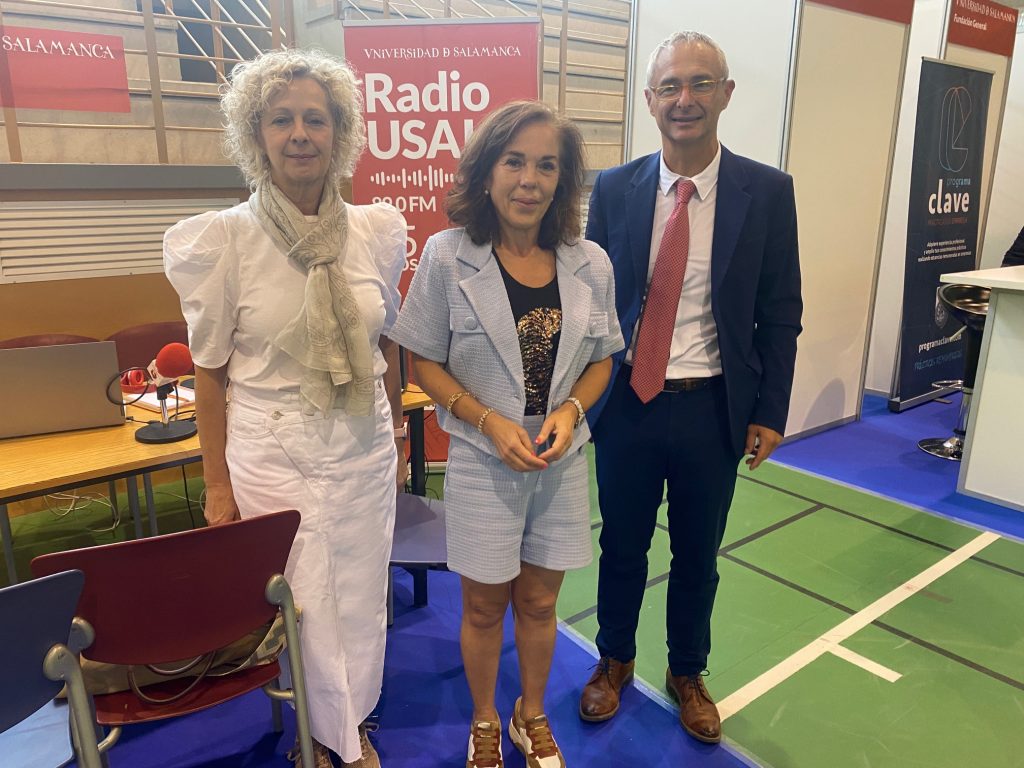 El rector y la vicerrectora de Estudiantes también quisieron compartir unos minutos con la radio de la USAL. Comentaban que las Ferias están siendo un éxito de asistencia. Nos aportaba el rector datos de matriculación. 1700 estudiantes en el Campus Viriato, con un incremento en prácticamente todas las titulaciones, más acentuado en la Politécnica. Hablamos también de la asistencia a la Feria de otras instituciones zamoranas, señalando que las relaciones son muy buenas y de gran colaboración.