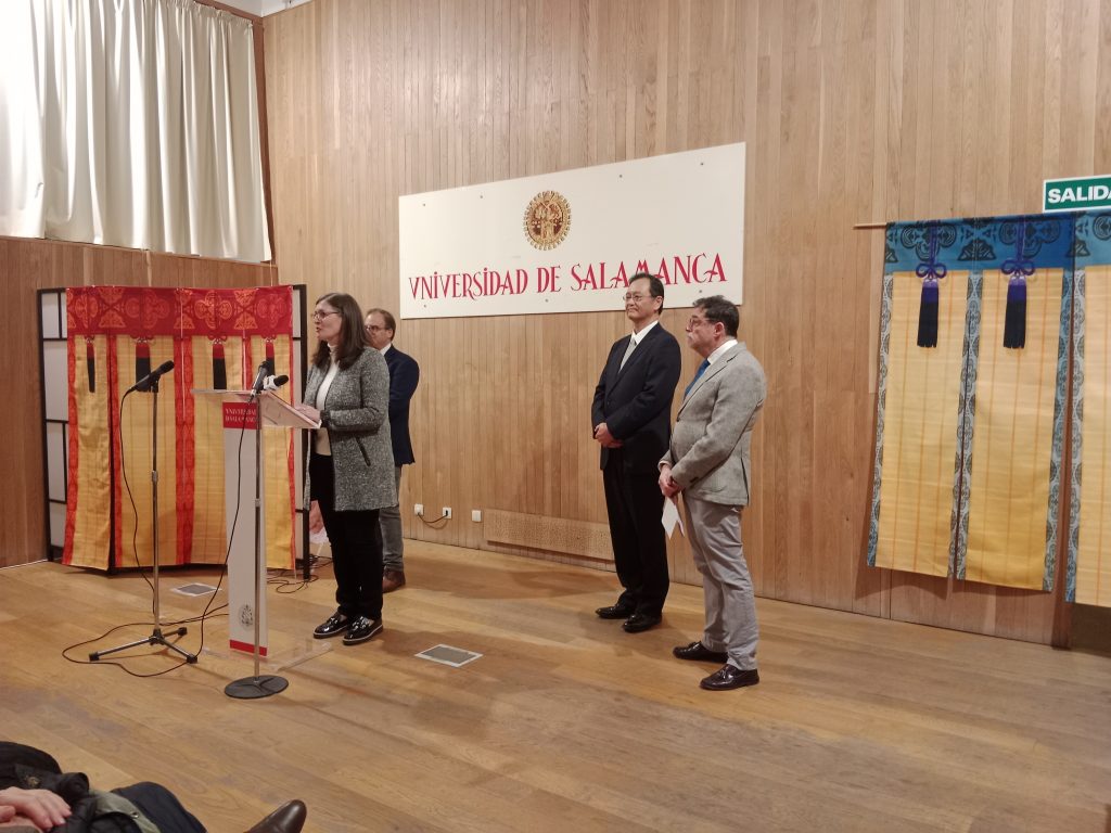 En el acto de presentación estuvo el embajador de Japón en España, Nakamae Takahiro ; José Abel Flores Villarejo, director del Centro Cultural Hispano-Japonés; Raúl Sánchez, vicerrector de Relaciones Internacionales y María José Rodríguez Conde, rectora de la Universidad de Salamanca.