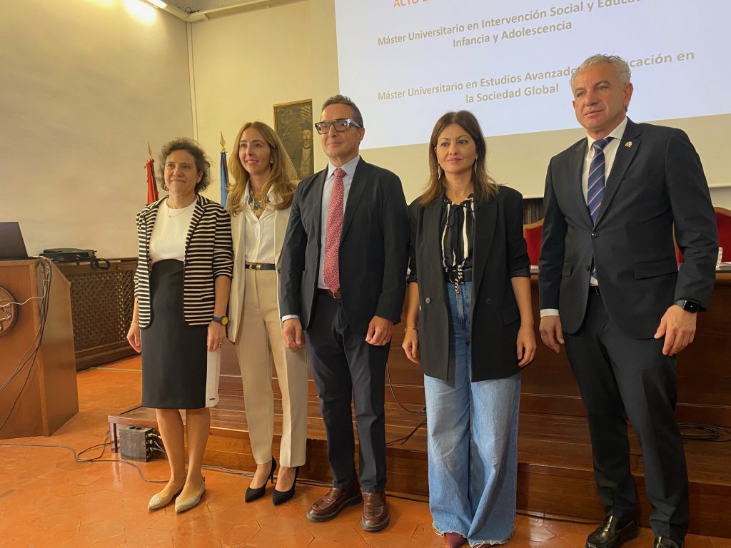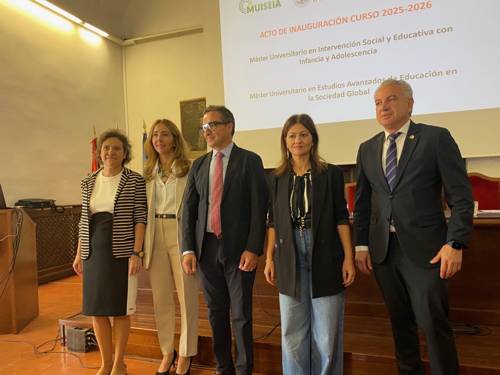 El rector de la Universidad de Salamanca, Juan Manuel Corchado, y la ministra de Juventud e Infancia, Sira Abed Rego, han inaugurado el Máster universitario en intervención social y educativa con infancia y adolescencia (MUISEIA), y el Máster universitario en estudios avanzados de educación en la sociedad global (EDUSOG). Ha sido esta mañana en el Colegio Arzobispo Fonseca. La ministra, previamente, ha respondido a cuestiones candentes, como la situación de la Flotilla Libertad y los españoles retenidos en esta acción. También respondió a la distribución de menores migrantes no acompañados por centros del país.