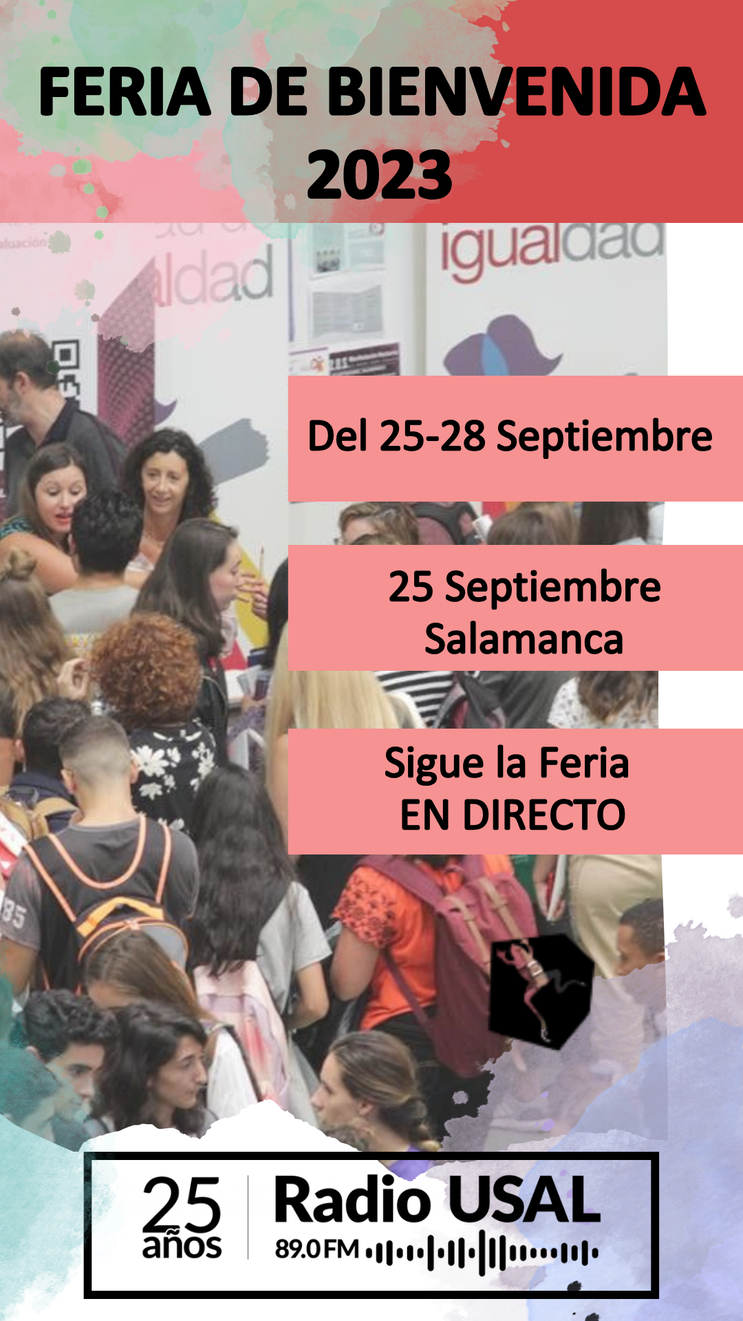 Como cada año cogemos los “bártulos” de emitir y nos vamos a contar las Ferias de Bienvenida de la USAL. Estaremos con programas especiales los días 25, 26, 27 y 28 de septiembre. Una cita con la comunidad universitaria, sobre todo con los nuevos estudiantes, y con todas las personas que quieran compartir un rato con la Universidad de Salamanca. En las Ferias de Bienvenida se muestran todos los servicios, posibilidades y oportunidades que se brindan a los estudiantes que eligieron la USAL, en cualquiera de sus campus, para su formación universitaria. Os esperamos en la Feria de Bienvenida en nuestros programas especiales que también podréis seguir a través de la FM o en radio.usal.es. Bienvenida al curso 2023-24 en la Universidad de Salamanca.