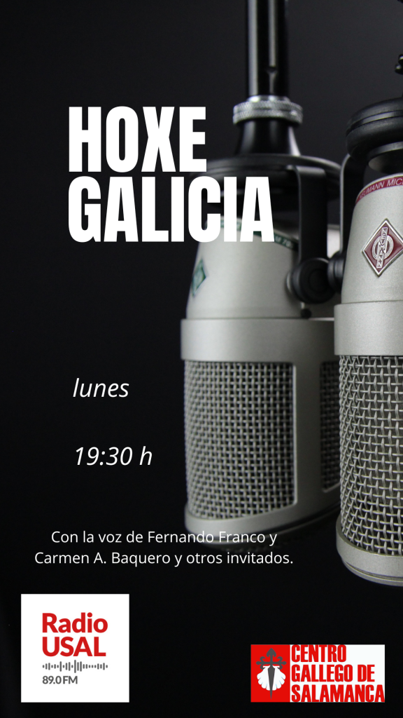 - Hoxe Galicia 29-01-2024Un nuevo espacio de Hoxe Galicia en la emisora universitaria en el que Galicia es cada 15 días, los lunes, la única protagonista de la mano del Centro Gallego de Salamanca.Descargar
